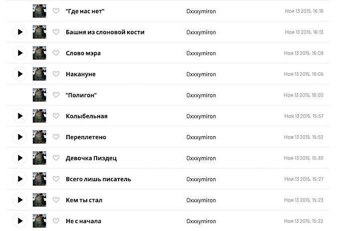 Короче, я прям помню день релиза и время релиза. Я торчал у себя в офисе на любимой работе, но время было спокойное, и я ковырялся в интернете. Я сидел слушал всякий британский рок, и тут, кажется, то ли мой друг Володя Завьялов, то ли я сам забрел от скуки на страницу Оксимирона — и прям случайно обнаружил новый альбом. Ну, и сразу скачал (тогда надо было качать!).