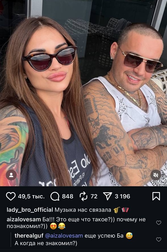 "Это еще что такое? — пишет Айза под совместной фоткой Гуфа и Lady Bro. — Почему не познакомил?"