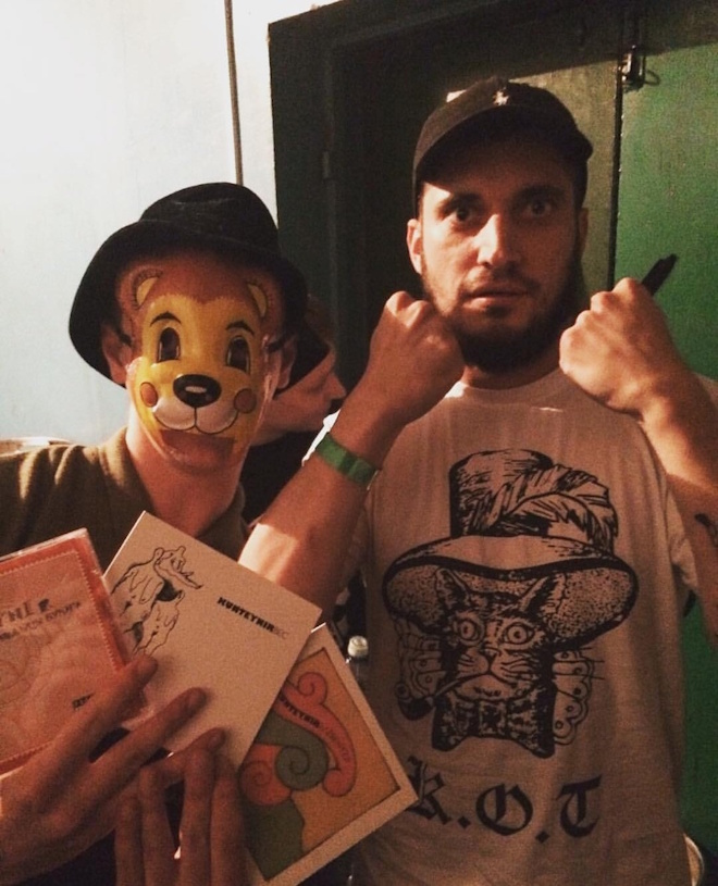 Но больше всего коннектов на концертах Эхопрокуренныхподъездов происходило, Андрей был мой главный проводник в мир рэпа, везде меня вписывал, царство ему небесное. Он тогда собирал приличные площадки, и в гримерках часто появлялись неожиданные люди. Не могу следующую историю подтвердить или опровергнуть, но с ним тогда тусила девчонка, которая часто дико неочевидных людей могла с собой привести в какое-то еще более неочевидное место. Она довольно влиятельная была, но ей очень творчество Андрея нравилось, и никогда не обламывалась за кого-то заплатить или вписать куда-то. И якобы, на одном из концертов были Скриптонит и Оксимирон, стояли сверху где-то, смотрели. Я подтвердить не могу: я тогда с панками в гримерке тусовался. Но вот такая история есть.