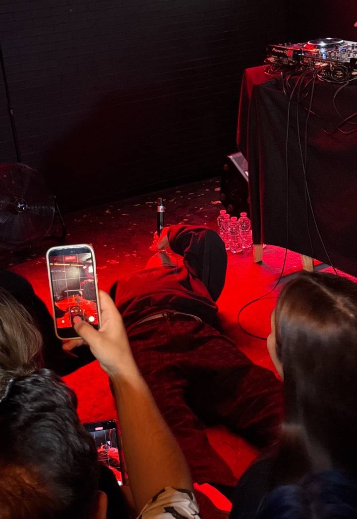 Не знаю, как “эшников” распределяют по заданиям, которые они должны "выполнять на пять с плюсом". Они тянут жребий? Возможно, тот, у кого самая короткая спичка, идет следить за Славой КПСС на концерте для 30 человек в обоссанном клубешнике. А Слава устраивает свои перформансы, взаимодействует с людьми в первом — и он же последний — ряду, все начинают его снимать, а он просто ходит, записывает видеокружки для них. Стучит микрофоном по объективам камер на телефонах каждому, чтобы у всех зрителей остался кружок с видео. Он выхватывает телефоны, кого-то поздравляет с днем рождения, подписывает какие-то сигны, трясет этой лабубой Антихайпа.