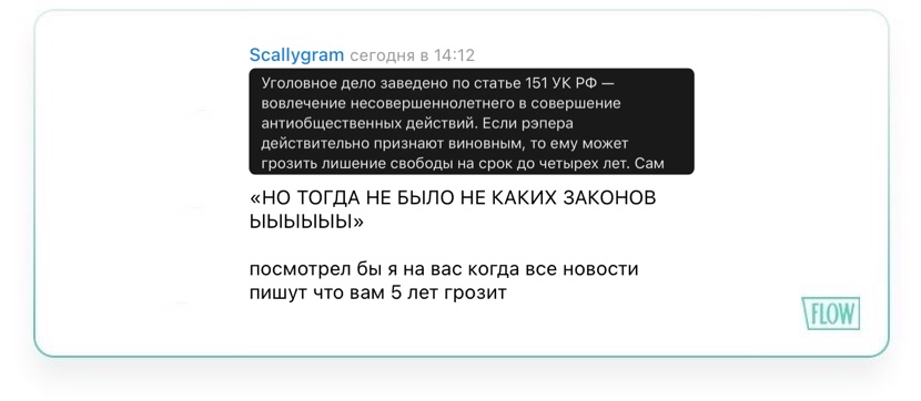 "Посмотрел бы я на вас, когда все новости пишут, что вам 5 лет грозит", — написал Scally Milano (сейчас сообщение удалено).