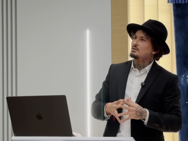 Первый вопрос звучит так: "Ты пришел в футболке, на которой изображен Путин. Ты без папы — никуда?"