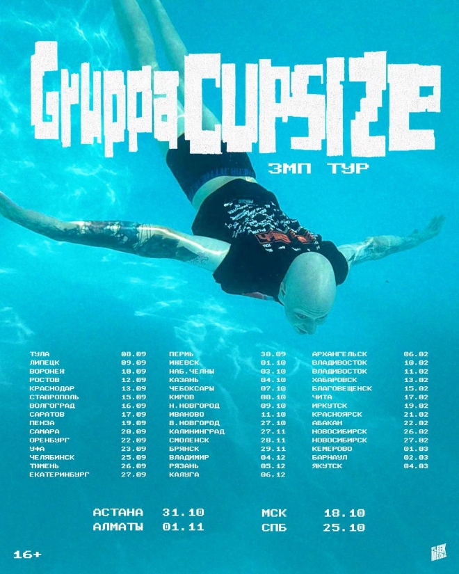Группа Cupsize отправится в тур по 46 городам. В числе заявленных локаций есть также Астана и Алматы. В Москве артисты выступят в VK Stadium.