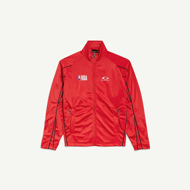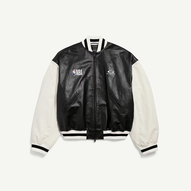 Коллекция состоит из кожаных университетских курток, спортивной формы и рюкзаков в черных, синих и красных тонах, повторяющих фирменные оттенки НБА.