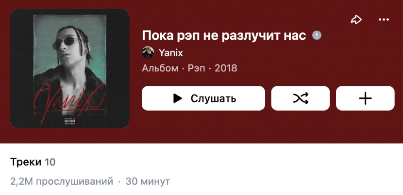 Yanix продолжает убирать слово “трэп” из своей дискографии: теперь его альбом 2018 года “Пока трэп не разлучит нас” называется “Пока рэп не разлучит нас”.